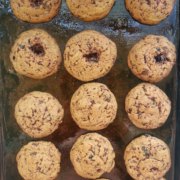 全麦面粉、白砂糖、植物油、牛奶、黑巧克力、葡萄干、食盐、泡打粉、温水、青柠檬汁。