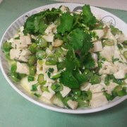 豆腐、鸡蛋、甜豆、蒜头、葱、香菜。