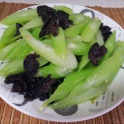 西芹、木耳、蒜头、盐、油、鸡粉。