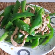 瘦肉、辣椒、蒜头、姜、盐、食用油、鸡粉、酱油、料酒、淀粉。