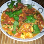 番茄、鸡蛋、蒜头、姜、葱花、油、盐、糖。