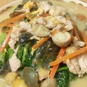 菠菜、蒜瓣、草菇、皮蛋、瘦肉。