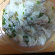 混沌皮、肉末、虾皮、榨菜、葱花。