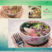 粉丝、鱼丸、火锅肠、肉片、小菠菜、油炸黄豆、酱油、食盐、陈醋、麻油、辣椒油。