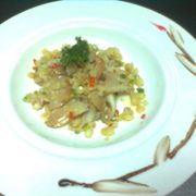 翡翠螺、苹果、姜末、红椒、青、葱白、蒜蓉。