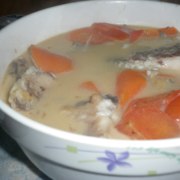 鱼骨、胡萝卜、番茄、食用油、盐、姜、料酒。