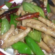 鸡脚、青辣椒、干辣椒、蒜、姜、食用油、香油、精盐、花辣粉、白酒、老抽。