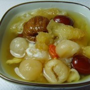 干鱼胶、龙眼肉、枸杞、去核红枣、蜜枣、冰糖、葱、姜。