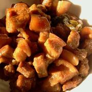 菜蕊、鷄蛋、黑椒猪排、葱、菜籽油。