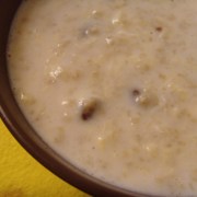 快熟麥片、鷄蛋、鮮牛奶、葡萄乾。