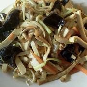 胡蘿蔔、鷄腿菇、榨菜、五香干、黑木耳、韭黃、菜籽油。