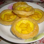 葡式蛋挞皮、蛋黄、牛奶、淡奶油、玉米粉、糖粉、炼奶、芒果、木瓜丁。