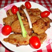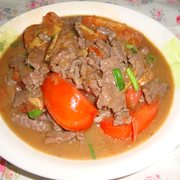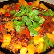 牛肉、菠萝、洋葱、姜片、青红辣椒、蛋青、鸡蛋、生抽、小苏打、番茄酱、杨梅酒。