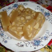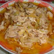 猪大肠头、菠萝、青菜椒、红菜椒、番茄酱、洋葱、姜片。
