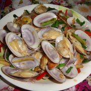 花蛤、姜、葱、粉丝、红辣椒、盐、酒、生抽。