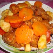 排骨、青苹果、西红柿、红萝卜、番茄酱、白糖、盐、生粉、生抽。