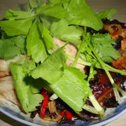 水磨拉肠粉、温水、生菜、鸡蛋、瘦肉、麻油、辣椒酱、酱油。