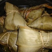 白糯米、黑糯米、眉豆、花生米、红豆、五花肉、绿豆、香菇、咸蛋黄、碱水、南乳、五香粉、生抽、食用油、盐。