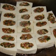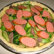 A:高筋面粉、A:低筋面粉、A:酵母、A:泡打粉、A:白糖、A:奶粉、A:黄油、A:猪油、A:鸡蛋、C:蛋黄、C:马苏里拉芝士、B:牛肉、B:芥兰心、B:生姜、B:烤香肠。