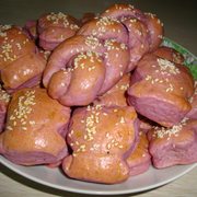 面粉、紫番薯、白糖、猪油、黄油、酵母、泡打粉、奶粉、鸡蛋。
