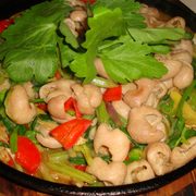 家鸡、茶树菇、香菇、辣椒、南乳、蒜头、生姜、生抽、生粉、盐。