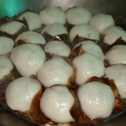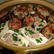 白豆腐、香菇、半肥肉、小葱、麻油、生抽、白糖、盐、生粉、食用油。