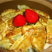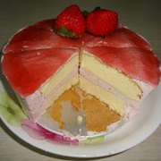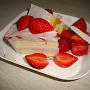 低粉、糖粉、草莓、牛奶、鸡蛋、鱼胶粉、开水、葡萄味QQ糖、香草粉。