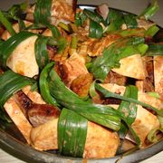 偏瘦五花肉、香芋、蒜苗、南乳、五香粉、生抽、老抽、蜂蜜、盐。