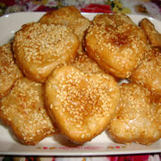糯米粉、澄粉、鸡蛋、白糖、白芝麻、黄油、水。