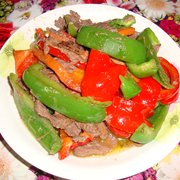 牛肉、灯笼椒、姜、鸡蛋、生粉、生抽。