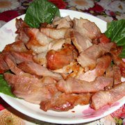 猪颈肉、叉烧酱、姜片、葱段、生粉、盐、生抽、蜂蜜。
