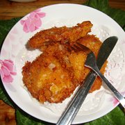 猪扒肉、盐焗料粉、油、盐、姜片、小葱白、生粉、面包糠、鸡蛋。