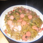 榨菜丝、火腿肠、五花肉、大葱、料酒、盐。