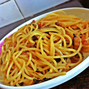 意大利面、蒜头、香菇、肉末、沙茶酱、盐。