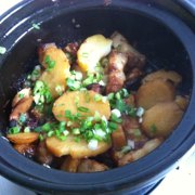 土豆、五花肉、酱、蒜头、油、豆豉。