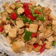 臭干子、红绿辣椒、瘦肉、绿豌豆米、花生油、小磨麻油、生抽酱油、蚝油、精盐、黄酒。