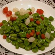 新鲜蚕豆、藠头、珍珠梅、香叶、花椒、干辣椒、盐、糖、小磨麻油。