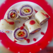 紫薯、鸡蛋、面粉、牛奶、黄柿子椒、红柿子椒、盐。