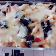 意大利通心粉、西红柿、鸡蛋、骨肉相连、木耳、马苏里拉、盐。