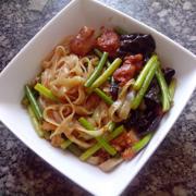 干河粉、鸡蛋、西红柿、木耳、骨肉相连、蒜薹、盐、老抽。