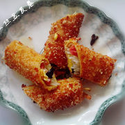 干豆腐皮、鸡蛋、香肠、土豆、木耳、面包糠、盐。