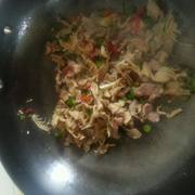 干笋、肉片、姜丝、蒜头、青红辣椒、油、盐、生抽。