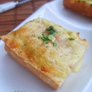 法棍、火腿、马苏里拉、胡椒粉、干葱、黄油、蒜泥、炼奶、白糖。
