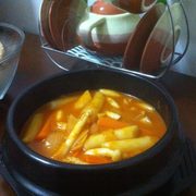 韩国年糕、韩国辣椒酱、海鲜菇、胡萝卜、洋葱、盐。