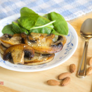 新鲜口蘑、新鲜菠菜叶、美国“大杏仁”、盐、黑胡椒碎、黄油。