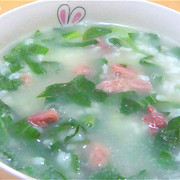 大米、火腿、青菜、虾皮、姜、橄榄油、盐。