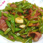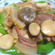 杏鲍菇、咸肉、青椒、大蒜、盐、糖、蚝油、料酒。