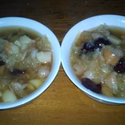银耳、雪梨、红枣、桂圆、马蹄、干百合、冰糖。