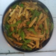 青椒、豆腐干、肉、十三香、盐、酱油、蒜头。