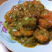 海虾、干罗勒叶、大蒜、洋葱、咖喱、椰子汁、淡奶油、柠檬、盐。